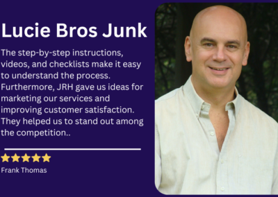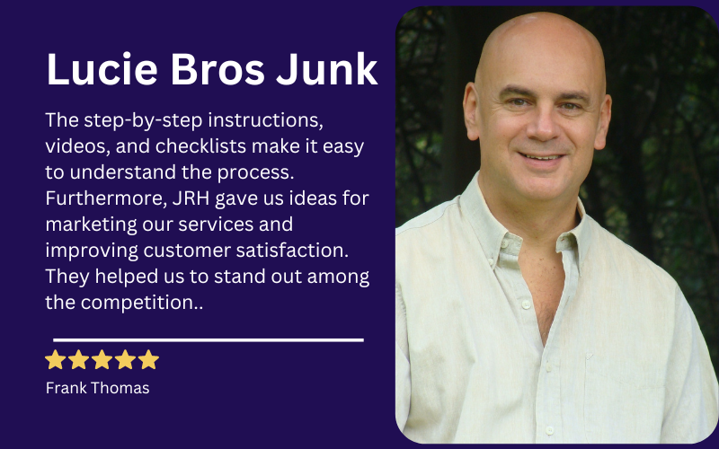 The JRH (Junk Removal Handbook) is a complete business in a box. We take the guesswork out of running a junk-hauling company. Save tens of thousands of dollars learning from our experience; no more pushy marketers, Website geeks, or SEO Wannabees to deal with. Build your business on your terms!